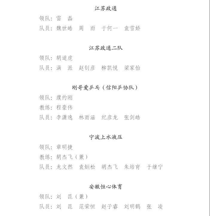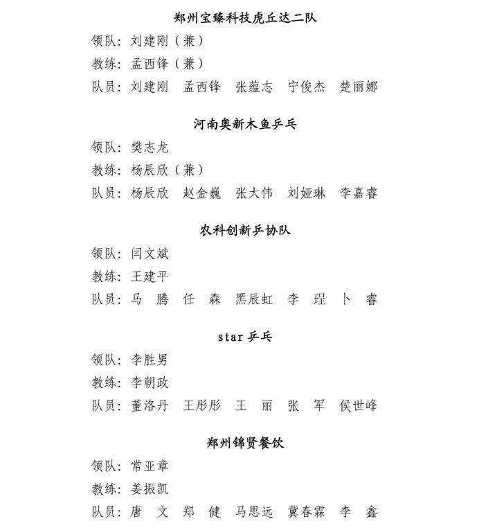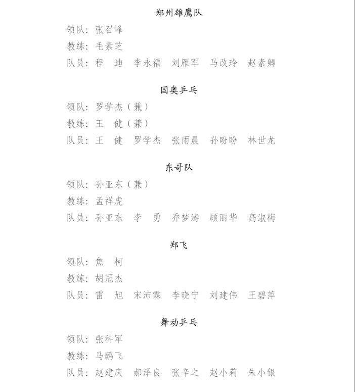 “健郑球王”郑州乒乓球精英大奖赛-运动员名单公示